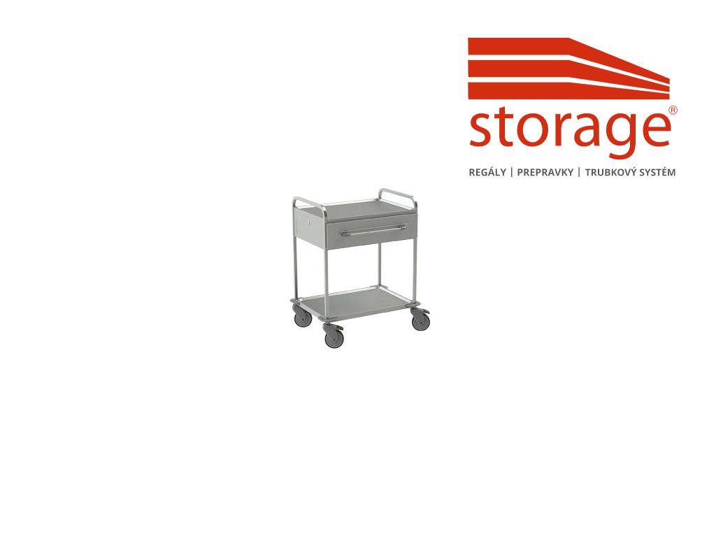 Kovový vozík z nehrdzavejúcej ocele AISI304. Konštrukcia je vybavená antivibračnou výstuhou. Vybavenie vozíka: 2 x plocha s 12 mm prelisom, nosnosť 50 kg, 1 x zásuvka veľkosti M (výška 120 mm), nosnosť 20 kg. Vozík má centrálne uzamykanie. Kolesá sú otočné, s plastovými nárazníkmi, priemeru 125 mm, z toho 2 s brzdou. Nosnosť výrobku je 120 kg.Dodatočné parametre