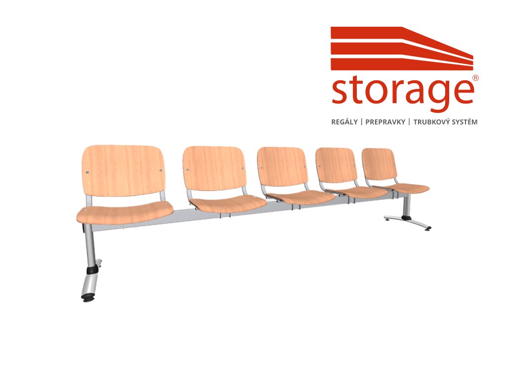 Kvalitný päťsedák s drevený sedákom a opierkou chrbta. V štandarde v dekore buk, za príplatok je možné dodať aj v iných odtieňoch. Šírka sedadla je 470 mm. V základnom prevedení je farba konštrukcie šedá, za príplatok je možné dodať aj s čiernou alebo chrómovou konštrukciou. Výrobok je modifikovateľný, napr. je možnosť dodať s odkladacím stolíkom miesto miesta na sedenie. Nosnosť je 130 kg na jedno sedacie miesto.Dodatočné parametre