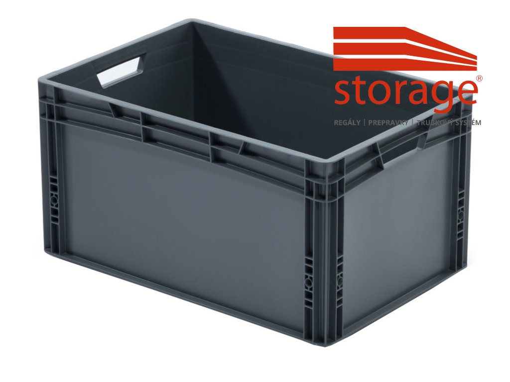 Vzhľadom na veľký objem je tento model vybavený otvorenými úchytmi, ktoré sú ergonomicky tvarované pre bezpečný úchop a manipuláciu aj pri plnom naložení. Štandardizovaný Euro rozmer zabezpečuje dokonalú kompatibilitu s paletami, regálmi a vozíkmi, čím vytvára stabilný logistický celok. Prepravka je navyše plne optimalizovaná pre plynulý chod v automatizovaných skladoch – hladké dno umožňuje tichý a stabilný posun po valčekových dopravníkoch, čím predchádza zaseknutiam a urýchľuje materiálový tok.