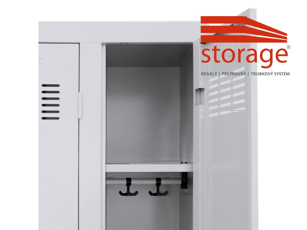 Zabezpečenie a hygienický štandard Dvere sú vybavené cylindrickým zámkom, čo zabezpečuje ochranu osobných vecí personálu. Perforované vetracie otvory v hornej aj dolnej časti dverí sú strategicky umiestnené pre krížovú cirkuláciu vzduchu, čo urýchľuje schnutie odevov a potláča vznik nežiaducich pachov. Povrchová úprava práškovým lakom v odtieni RAL 7035 poskytuje vysokú odolnosť voči poškriabaniu a umožňuje rýchlu údržbu bežnými čistiacimi prostriedkami.