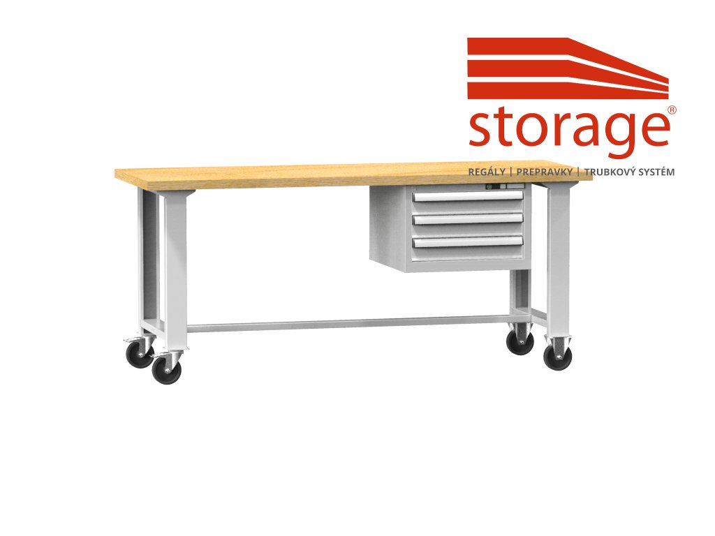 Mobilný dielenský stôl s drevenou doskou a zásuvkami MPS3-815