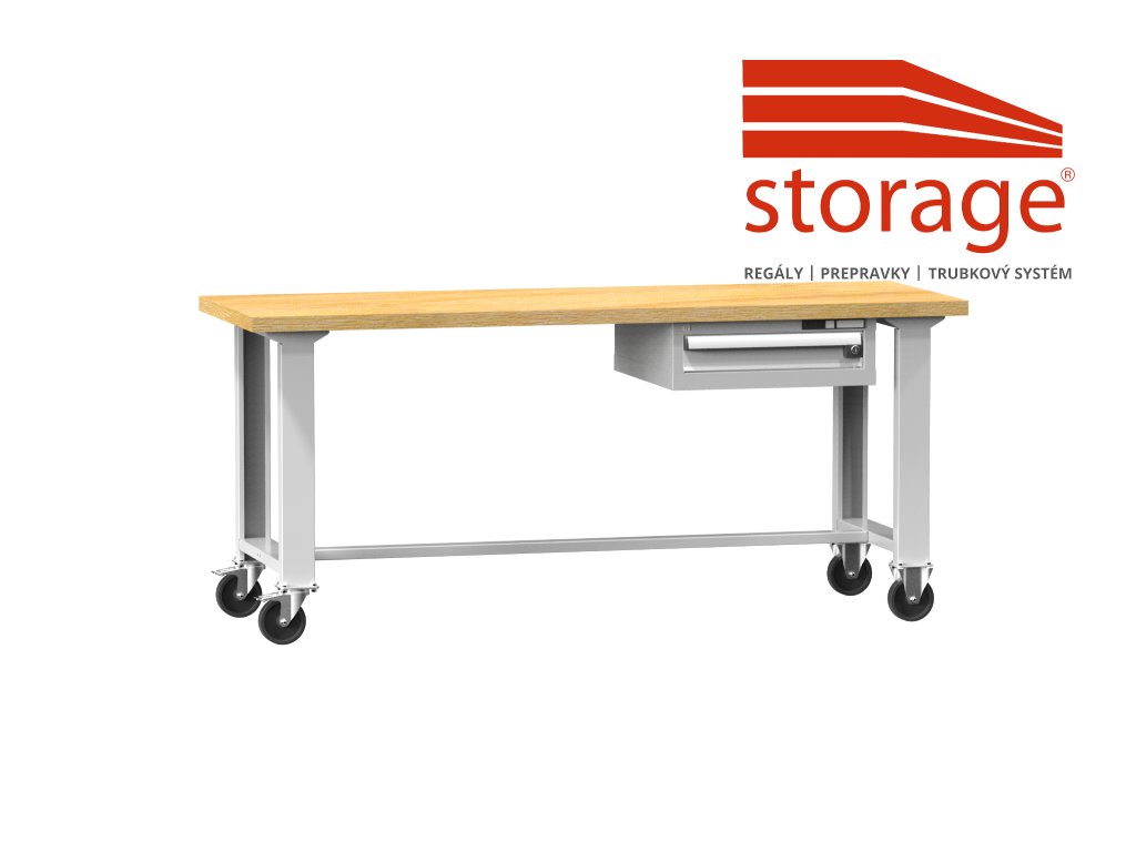 Mobilný dielenský stôl s drevenou doskou a zásuvkou MPS2-820