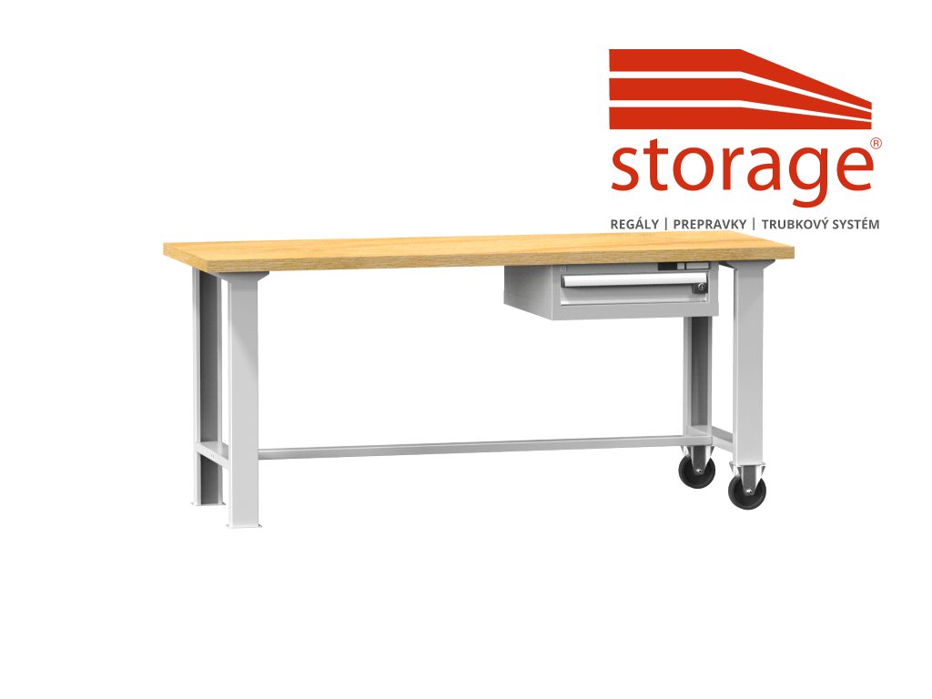 Mobilný dielenský stôl s drevenou doskou a zásuvkou MPS5-715