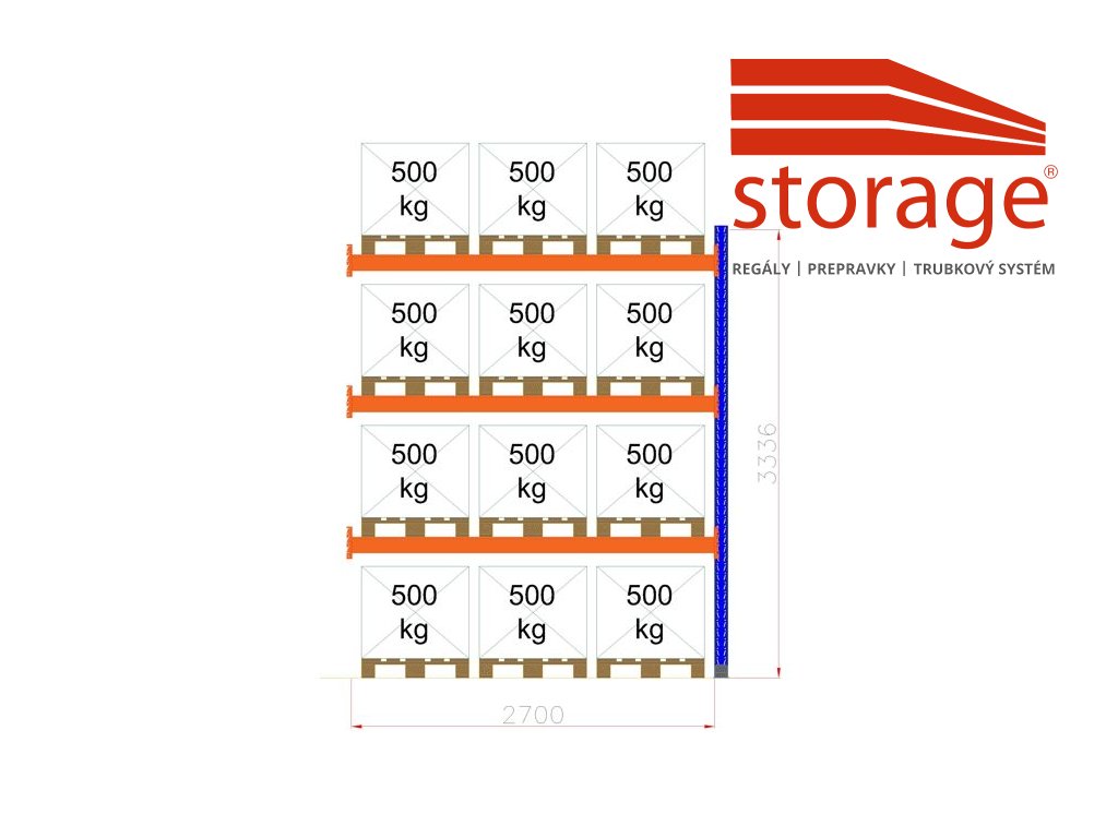 Paletový regál 2800x1100x3366 mm – 3 úrovne skladovania, nosnosť 1500 kg na úroveň