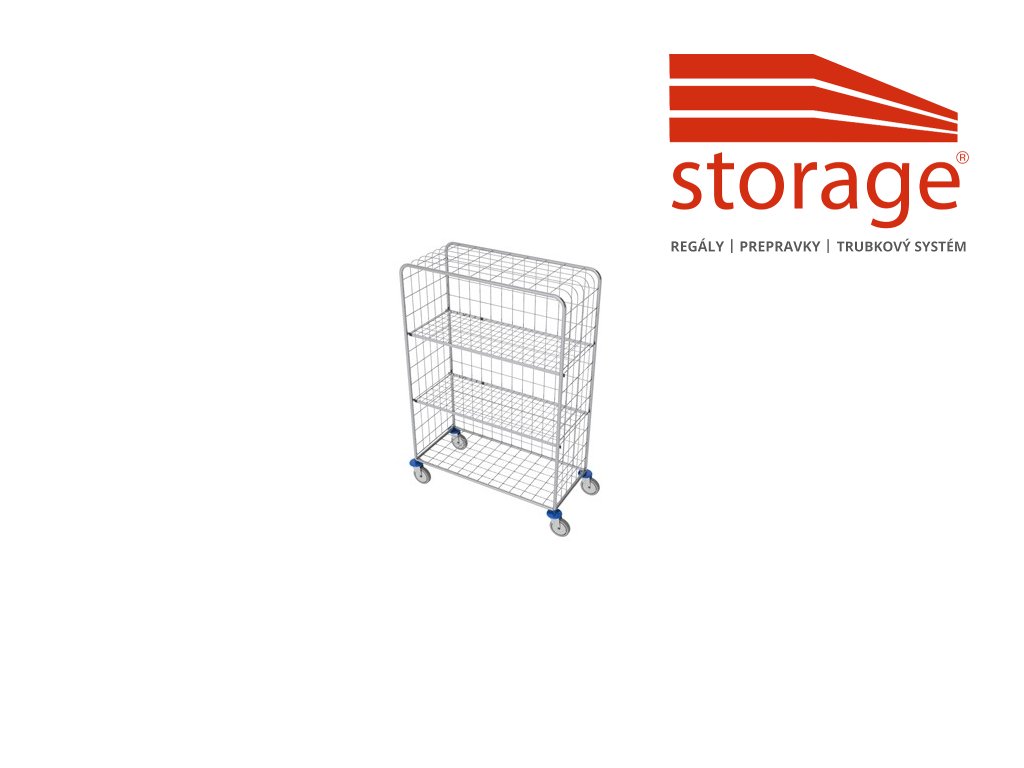 Kovová klietka na kolieskach s pozinkovanou povrchovou úpravou. Vozík je vybavený: 2 x prestaviteľná polica, nosnosť 70 kg. Kolesá sú otočné, priemer 125 mm, vybavené plastovými nárazníkmi. Celková nosnosť výrobku je 300 kg. Vozík je možné vybaviť obalmi a vakmi.Dodatočné parametre