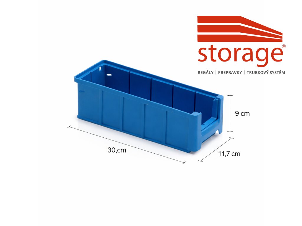Modrá regálová prepravka 30×11,7×9 cm z odolného PP je ideálna na prehľadné skladovanie drobných dielov a súčiastok. Vďaka robustnej konštrukcii je ľahko stohovateľná a vhodná do regálových systémov či karuselových zakladačov. Praktické riešenie pre sklady, dielne aj výrobu.