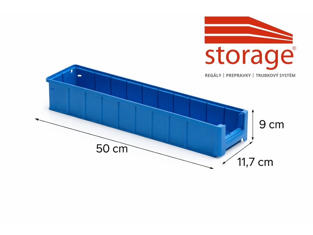Modrá plastová regálová prepravka 50×11,7×9 cm z PP je navrhnutá na efektívne skladovanie drobných súčiastok a komponentov. Vďaka odolnej konštrukcii je stabilná, stohovateľná a vhodná pre použitie v regálových systémoch či zakladačoch. Zabezpečuje úsporu priestoru a prehľadné usporiadanie dielov v skladoch aj dielňach.