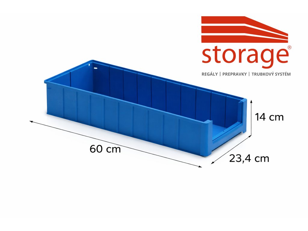 Modrá plastová regálová prepravka 60×23,4×14 cm z PP ponúka priestranné riešenie na uloženie väčších dielov a komponentov. Robustná konštrukcia zaručuje dlhú životnosť, stabilitu a možnosť stohovania. Ideálna na využitie v regálových systémoch, skladoch, dielňach a výrobných prevádzkach, kde zabezpečí poriadok a prehľadnosť.