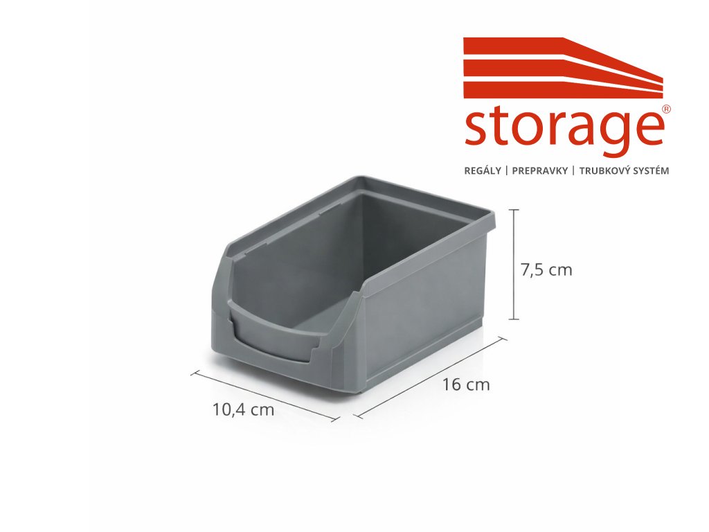 Šedá skosená prepravka 16 × 10,4 × 7,5 cm z kvalitného PP plastu s objemom 0,8 l a nosnosťou 2 kg je určená na skladovanie drobných dielov, spojovacieho materiálu či súčiastok. Vďaka kompaktnej veľkosti a odolnej konštrukcii je vhodná do dielní aj skladov.