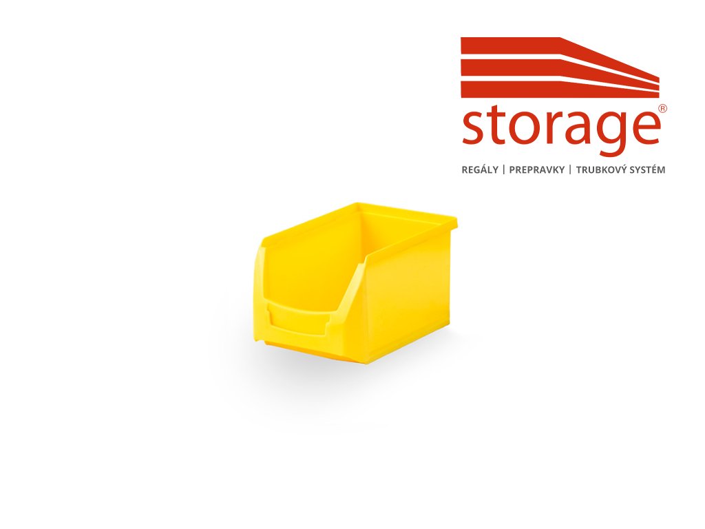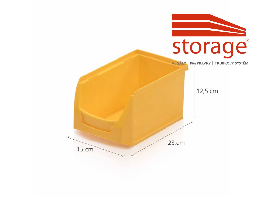 Žltá skosená prepravka 23 × 15 × 12,5 cm z PP plastu s objemom 3 l a nosnosťou 5 kg je ideálna na uskladnenie väčších drobných dielov, spojovacieho materiálu a komponentov. Vďaka odolnej konštrukcii a praktickému tvaru je vhodná do skladov, dielní aj výrobných prevádzok.