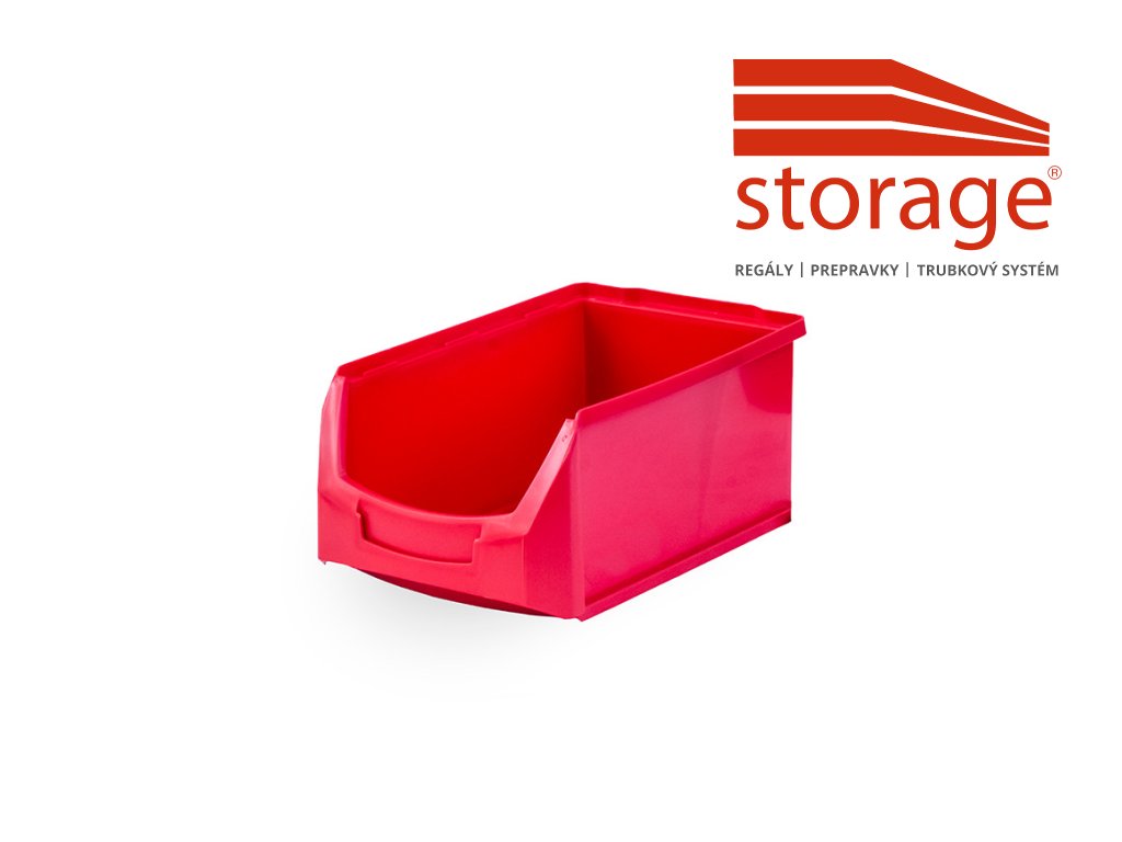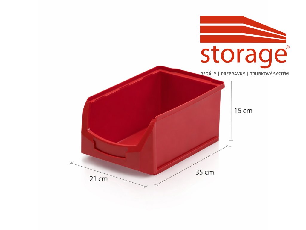 Červená skosená prepravka 35 × 21 × 15 cm z PP plastu s objemom 7 l a nosnosťou 10 kg je určená na prehľadné skladovanie väčších súčiastok, dielov a spojovacieho materiálu. Pevná konštrukcia a praktický tvar zaručujú dlhú životnosť a efektívne využitie v skladoch či dielňach.