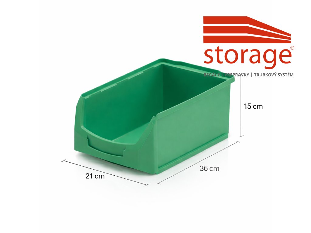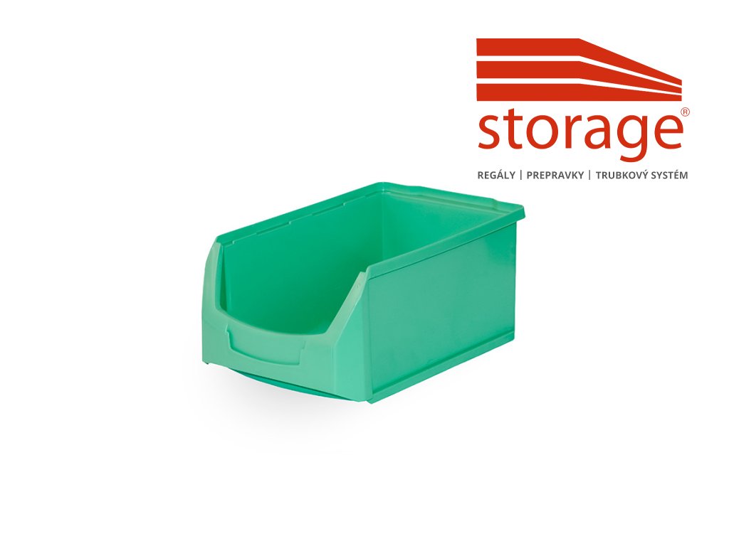 Zelená skosená prepravka 35 × 21 × 15 cm – veľkokapacitný systém pre prehľadný sklad