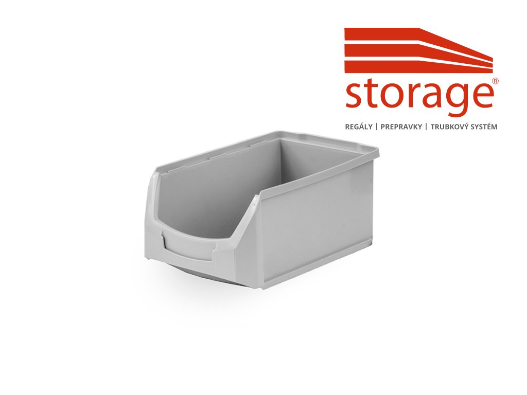 Šedá skosená prepravka 35 × 21 × 15 cm z PP plastu s objemom 7 l a nosnosťou 10 kg je určená na praktické uloženie väčších dielov, súčiastok a spojovacieho materiálu. Pevná a odolná konštrukcia zaručuje dlhú životnosť pri použití v skladoch, výrobných halách aj dielňach.