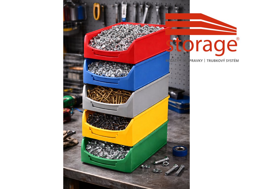 Vďaka skosenému tvaru čela presne vidíte stav zásob aj v spodných boxoch zostavy. Nemusíte nič presúvať, všetko je prístupné na jeden pohyb ruky. Precízne vylisované okraje do seba pri stohovaní perfektne zapadajú, takže sa nemusíte báť, že by sa naložený stĺpec boxov začal kývať. Je to investícia do poriadku, ktorá sa vráti v podobe ušetreného času a menšej únavy zamestnancov pri manipulácii s ťažkým tovarom.