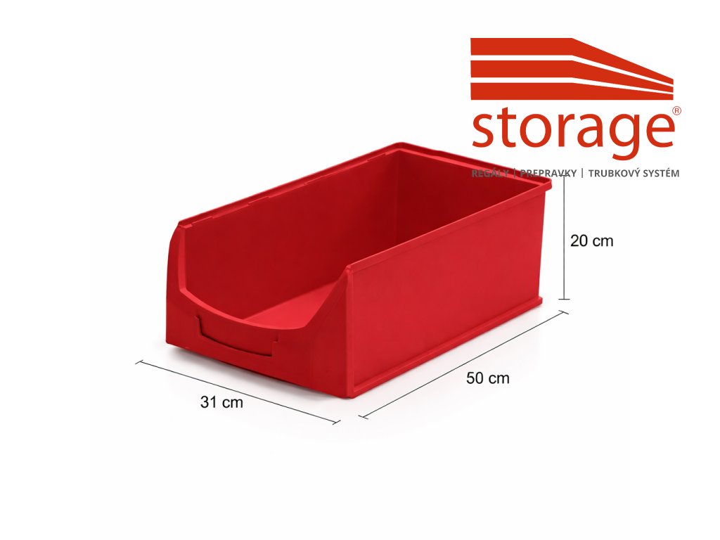 Červená skosená prepravka 50 × 31 × 20 cm z PP plastu s objemom 24 l a nosnosťou 20 kg je ideálna na skladovanie väčších dielov, náradia a spojovacieho materiálu. Odolná a priestranná prepravka je vhodná do výrobných hál, skladov aj dielní, kde zaručuje poriadok a efektívne využitie priestoru.