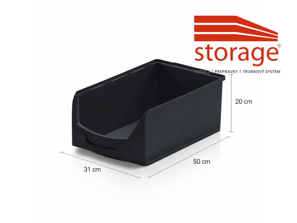 Skosená prepravka 50 × 31 × 20 cm z PP plastu s objemom 24 l a nosnosťou 20 kg je určená na uloženie väčších dielov, náradia a spojovacieho materiálu. Vďaka odolnej konštrukcii a priestrannému prevedeniu je ideálna pre sklady, výrobné prevádzky aj dielne.