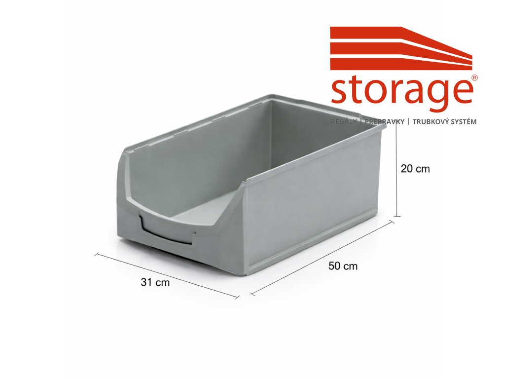 Sivá skosená prepravka 50 × 31 × 20 cm z PP plastu s objemom 24 l a nosnosťou 20 kg je priestranným riešením na uloženie väčších dielov, náradia a spojovacieho materiálu. Vďaka pevnej konštrukcii a praktickému tvaru sa hodí do skladov, výrobných hál aj dielní.