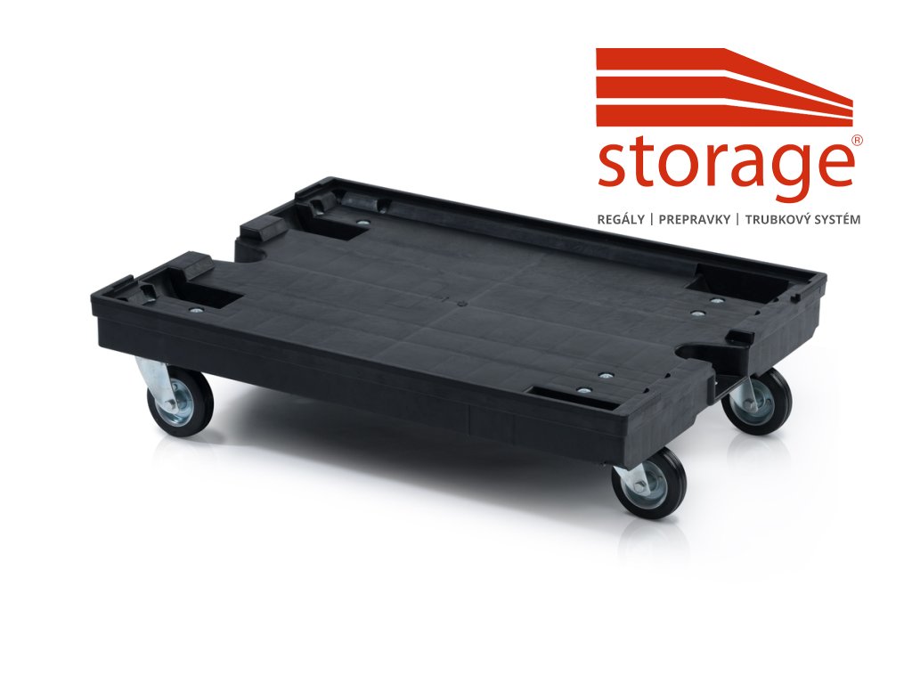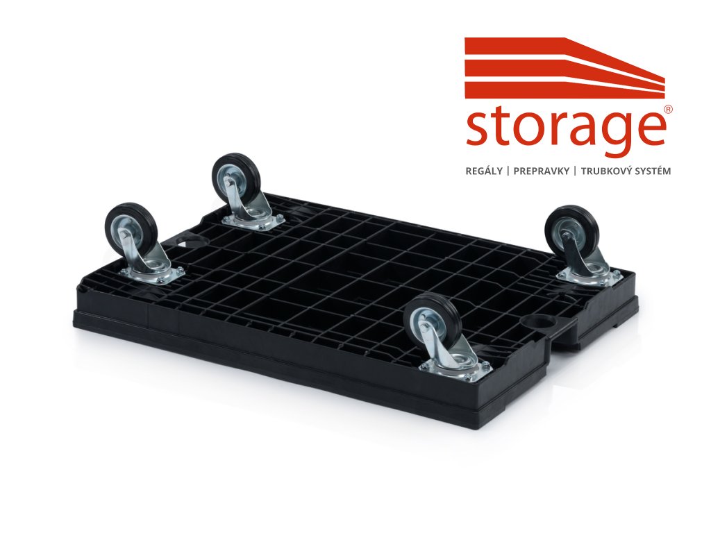ESD prepravný podvozok 82 × 62 × 20 cm s nosnosťou 280 kg a štyrmi otočnými kolieskami (O 10 cm) z vodivého plastu zabezpečuje jednoduchú manipuláciu s ESD prepravkami a spoľahlivú ochranu proti elektrostatickému výboju.